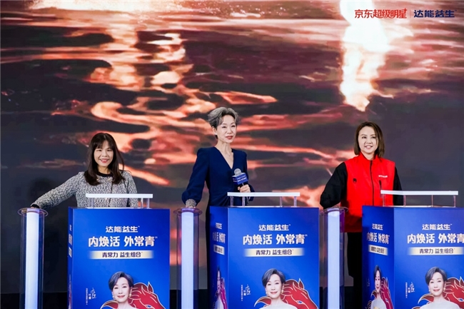 启动会的核心环节是达能益生新春礼盒的隆重揭幕。叶童与达能中国副总裁、社区营养事业部负责人郑立仪,以及京东代表共同按下启动键。随着金马奔腾的动画跃上大屏,蕴含“活力长驻,内外常青(2)”美好寓意的礼盒正式亮相。郑立仪女士在现场表示,基于达能集团百年益生菌研究和强大科研实力,品牌始终致力于助力活力银发族保持好状态,坚持赋予所有新时代的活力银发族以年轻力。推出这款中老年奶粉是希望助力50+群体马上焕活,享受活力好、精力好、气色好的新春佳节。京东超品负责人表示,京东致力于为消费者提供丰富的高品质营养好物,同时依托于京东的供应链能力和优势,以及优质的服务,将这份活力的祝福送入千家万户。