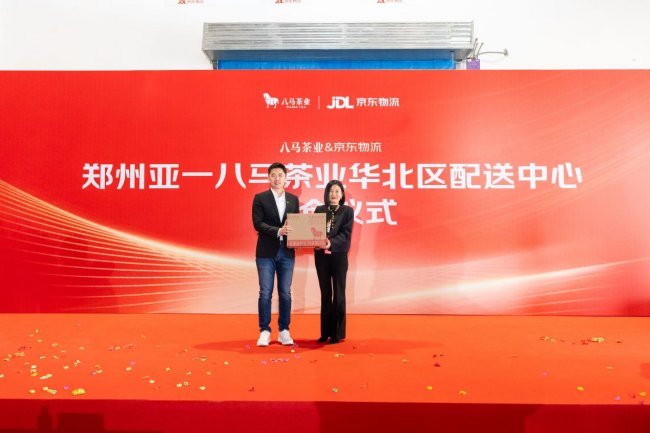 2024年4月,八马茶业与京东物流联手打造的郑州亚一八马茶业华北区配送中心正式开仓运营(左一为八马茶业联席总经理王焜恒)