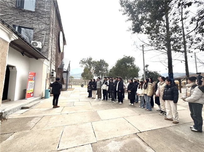 随后,学生们前往马衙街道金山村,实地参观猫咖、猫医院、猫事馆等特色业态,深入了解金山猫村改造历程与特色IP打造路径。通过现场学习与交流,周峰对家乡乡村文旅融合发展的新模式、新思路有了更清晰的认识。他表示,乡村振兴不仅体现在环境提升,更体现在产业运营、品牌打造与文化赋能上,金山猫村的实践让他看到了家乡“把资源变资产、把特色变优势”的生动样板。