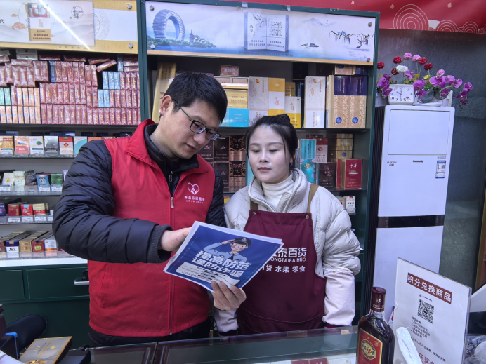临近春节,为助力地方政府全面落实烟花爆竹“双禁”工作,近日,长兴县烟草专卖局组织“香溢”志愿者走进零售终端,向零售户宣传“双禁”规定内容,提醒客户要坚决禁止存储、运输、销售、燃放烟花爆竹,自觉遵守“双禁”规定,共同筑牢春节安全防线,共同守护美丽蓝天。
