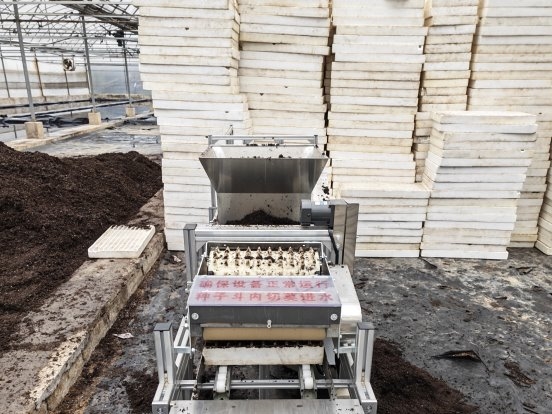 伴随着设备的精准调试,全自动育苗播种机正式投入运转,烟叶育苗工作全面进入机械化作业阶段。在机器的高速运转下,经过科学配比的基质被均匀填充至育苗穴盘,一粒粒包衣种子精准落入预设的穴孔中,装盘、压穴、播种等一系列工序一气呵成,全程实现自动化操作,彻底告别了传统人工逐粒点籽的模式。不仅作业效率较传统方式提升数倍,种子的播种精度与均匀度也得到了显著提升,为培育优质烟苗打下了良好开端。