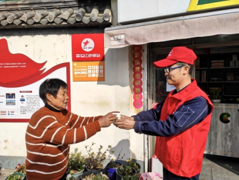 市心中路的一家便利店里,熟悉的红马甲身影总会如约而至。他们是萧山烟草的志愿者,来这里的红色驿站开展服务。