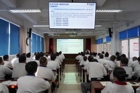 2月24日,济南轻骑铃木摩托车有限公司全员上班,各产线全部开足马力进入生产状态,计划日产量完成870台。同时,公司党委书记、副总经理(中方负责人)刘利主讲开工“第一课”,向公司中层以上管理人员、车间班组长强调安全生产的重要性,并讲授安全生产相关知识。