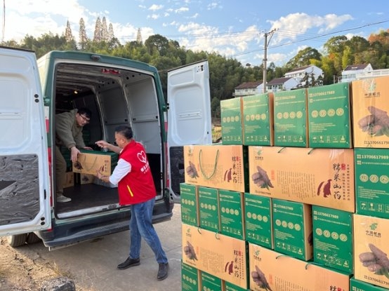 (图为该局党员志愿者帮助种植户运输糯米山药。刘一心/摄)
