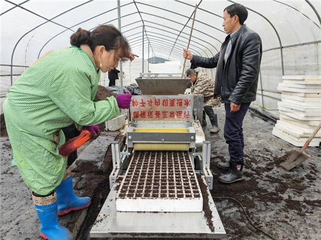 湖北利川:基质装盘忙春耕 机械播种育新苗