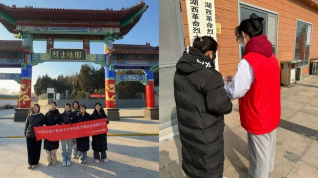 从测量数据到手法理疗,从专业指导到知识普及,队员们的每一项服务都细致入微、专业贴心,赢得了马集镇乡亲们的一致好评。在服务基层群众健康的同时,实践队不忘赓续红色血脉,专程前往石麟山和湖西革命烈士陵园开展红色教育实践活动。队员们在庄严肃穆的陵园内驻足瞻仰,深切缅怀革命先烈的英勇事迹与崇高精神。通过实地参观学习,队员们接受了一次深刻的党性教育与精神洗礼,更加深刻地理解了“为人民服务”的初心内涵。大家纷纷表示,要将革命先烈的奋斗精神融入医学学习与实践中,以仁心仁术守护人民健康,用青春力量传承红色基因。