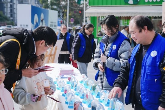 另一边的游戏闯关区堪称现场“人气焦点”,“识毒找茬”“禁毒知识飞镖”“禁毒套圈”三大趣味游戏各具特色。参与者手持闯关卡,在轻松愉悦的互动体验中比拼识毒能力、巩固禁毒知识,每一次闯关成功都伴随着满满的成就感,而集章兑换的禁毒主题文创礼品,更让学习过程充满获得感,让“学禁毒、懂禁毒”成为节日里的一股潮流。不远处的禁毒主题留影区,创意打卡相框与主题立牌吸引众多群众驻足,大家纷纷手持“珍爱生命、远离毒品”“无毒家乡,平安过年”等标语牌合影留念,用镜头定格禁毒决心,让禁毒理念在欢声笑语中悄然传播。
