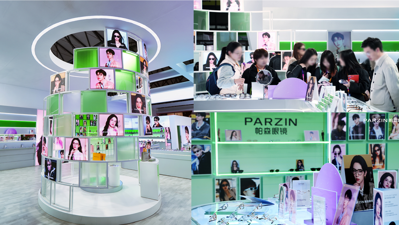 正在火热进行中的上海眼镜展上,帕森展馆成为全场焦点之一。展台以“双星代言”为核心,划分“范丞丞潮流区”与“周也生活美学区”,分别呈现先锋设计与日常实搭场景,直观传达“一镜多搭 一镜多用”的品牌主张。
