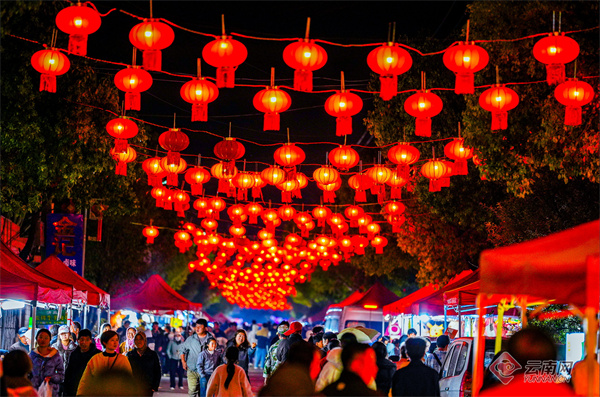 3月3日,昆明市寻甸回族彝族自治县“塘子落灯节”系列活动在塘子街道犀牛会温泉运动公园迎来高潮。作为首批列入昆明市级非物质文化遗产名录的民俗,“落灯节”又称“正月十六赶夜街”,传承至今已演变为集沐浴康养、观灯赏会、看戏品味、访友集市于一体的文化盛会。