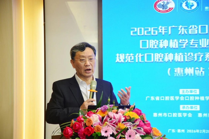 2月28日,2026年广东省口腔医学会口腔种植学专业委员会规范化口腔种植诊疗系列学术活动(惠州站)在惠州口腔医院成功举办。本次活动以“规范化种植诊疗与数字化技术新进展”为主题,是该系列学术活动的马年全省首站,为全省口腔种植学科的交流与发展奠定了良好开局。