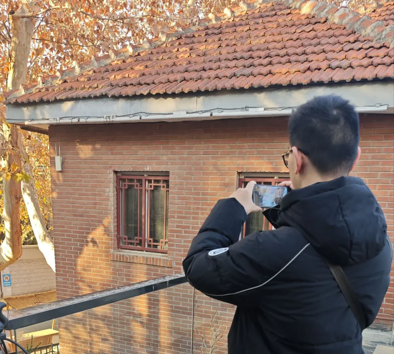 2026年1月3日,东南大学信标社的社员们集结于梅园新村纪念馆。社员们手持手机与摄像机,在古朴的院落里穿梭,从一砖一瓦的纹路到手稿电报的细节,从展厅内文物的陈列布局到园内花草的分布状态,都被一一细致记录。社员们时而驻足凝视泛黄的文献照片,试图捕捉那个年代特有的气息;时而近身观察窗户的高度与宽度,确保数字模型的精准还原。纪念馆内的每一件旧物,都成为社员们眼中珍贵的建模素材,社员们用手机拍摄下数十张细节照片,为后续的数字重建积累了第一手资料。
