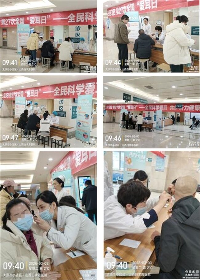 2026年3月3日是第二十七次全国爱耳日,今年活动主题为“全民科学爱耳、共护听力健康”。为进一步提升全民听力健康意识,普及科学爱耳、护耳知识,落实全国防聋治聋技术指导组关于开展第二十七次全国爱耳日宣传教育活动通知精神,在山西白求恩医院耳鼻咽喉头颈外科科主任温树信、科副主任文开学、专科护士长王清、门诊护士长樊茂青的精心统筹、周密部署下,围绕“安全用耳 健康成长”主题,开展了为期多天的公益义诊、专场筛查、科普讲座、社区宣教等系列活动,用专业与爱心守护群众“听得见”的幸福。