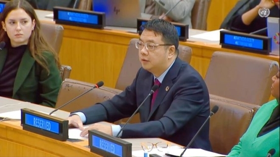 ▲策马集团创始人唐兴在纽约联合国总部对话第80届联大主席时谈及数据治理