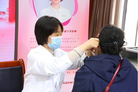 现场活动内容丰富、务实高效,集健康科普、专家义诊与早期健康筛查、中医理疗于一体,充分彰显了公益性与专业性。健康讲座环节特邀中日友好医院中医妇科主任医师王清教授,以《“声”如夏花,不“郁”讲台——教师常见嗓音、情绪困扰与女性健康的中医养护》为题,为女教师们带来了一场深入浅出、生动实用的健康知识分享。义诊环节为此次活动核心亮点,协会充分发挥平台优势,集结来自首都多家顶级三甲医院的权威专家,现场开展“一对一、多学科”的免费健康咨询服务。专家团队阵容强大,涵盖与教师职业健康及女性健康密切相关的多个领域:北京中医药大学第三附属医院眼科主任王志强、中日友好医院中医妇科王清、北京大学人民医院乳腺外科王思源、北京口腔医院口腔预防科主任刘敏、中国康复研究中心北京博爱医院泌尿康复科主任吴娟、中日友好医院中医妇科护士长王倩如等。专家们耐心倾听、细致解答,针对教师群体常见的嗓音问题、情绪压力、乳腺及妇科疾病等,提供专业的诊疗建议与个性化指导。现场设立医用红外热成像早期健康筛查点,通过先进的功能影像学技术,为参与教师提供全面的健康状态评估参考,帮助她们更早了解自身健康状况,提升疾病预防意识。此外,现场特别设置了中医特色体验区,专家团队为女教师们提供了揿针治疗体验,通过这种安全、无痛的皮内针疗法,有效缓解了部分教师的颈肩酸痛、失眠等长期伏案工作带来的“职业病”,让老师们亲身感受到了中医适宜技术的独特魅力。