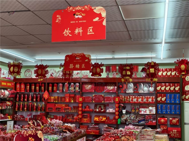 帮扶小组深入东门村走访调研,精准挖掘市场空白——原来,当地缺少专业婚庆用品店,村民办理喜事需长途奔波采购,需求十分迫切。小组结合小店实际与市场需求,为其量身打造转型提升方案,从“经营定位、终端改造、能力提升”全链条发力,推动小店从传统百货店向特色主题店转型。