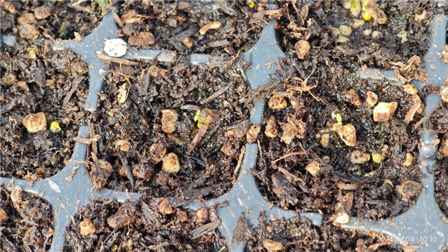 (大棚里出苗期的烟苗)