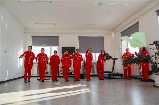 活动在党支部书记的节日祝福和感谢致辞中拉开帷幕,共设置了五个妙趣横生的项目。在“同心助产——滚铁圈”环节,女工们手持铁钩推动铁环稳步前行,考验平衡与耐心,寓意工作需一丝不苟;“精准赋能——叠纸飞机”区域,巧手折叠的纸飞机瞄准“龙门”奋力投掷,展现了精准发力、锚定目标的精神;“巧手攻坚——歘嘎拉哈”最具东北特色,老员工现场教学年轻同事,在互动中传承传统文化,拉近了彼此距离;“奋进争先——踢毽子”和“聚力前行——跳皮筋”更是将活动推向高潮,五彩毽子轻盈起舞,长皮筋间跃动着矫健身影,欢笑声此起彼伏。
