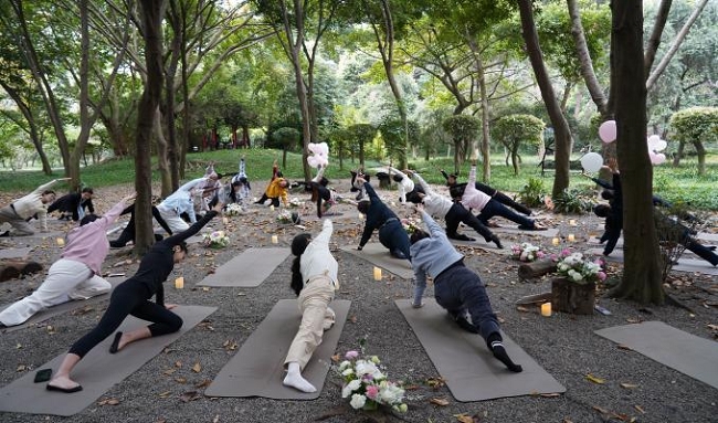 分享会后,活动进入沉浸式文化体验环节。在“非遗绒花·指尖传韵”手工制作中,女职工与女兵们一同沉浸于中式美学的宁静与匠心。在老师的指导下,大家学习勾条、打尖、造型等传统技法,一根根普通的绒线在指尖被赋予生命。这不仅是非遗手艺的传承,更是对“明礼”文化中专注、修身内涵的切身实践。随后的“春日唤醒·瑜伽四部曲”,则关注女性的身心健康。资深瑜伽老师带领大家通过舒缓拉伸、核心塑形等练习,帮助在场女性放松身心、唤醒活力。