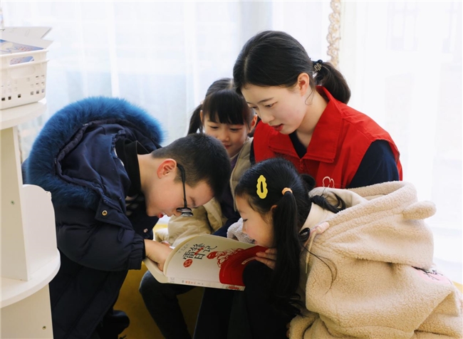 图为“香溢”志愿者和孩子们一起共读红色故事。 黄彤彤 摄