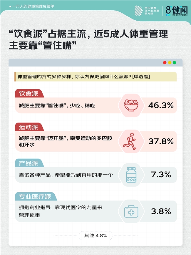 “饮食派”占据主流,近5成人体重管理主要靠“管住嘴“
