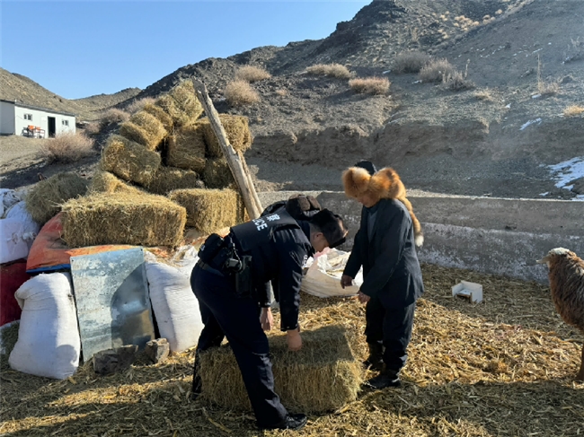 “大叔,最近身体咋样?草料还够不够?”“天冷要注意添衣,家里用火用电可得当心。”在牧民家中,民警盘腿坐在炕头,与牧民拉起家常。没有会议室里的拘谨,有的只是亲人般的嘘寒问暖。民警仔细询问草料储备、牲畜越冬及接羔保育准备情况,认真倾听实际困难。一句句暖心话语,一声声细致叮嘱,拉近了警民距离。
