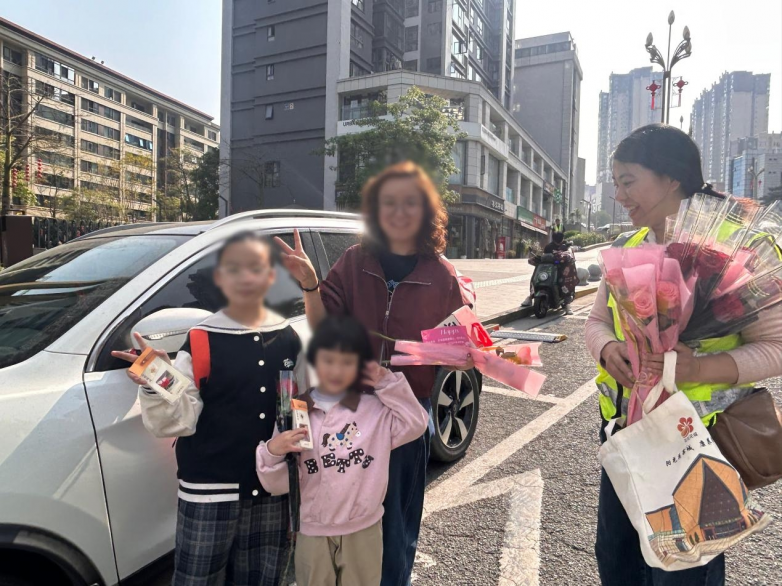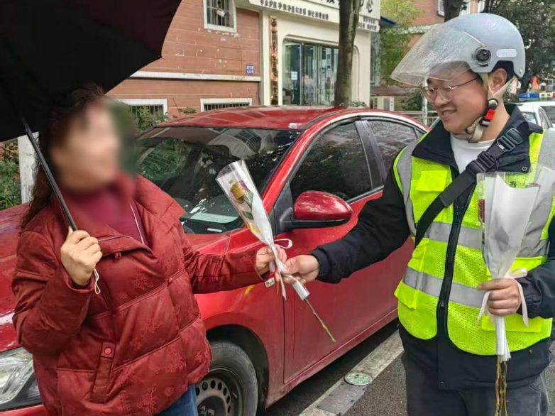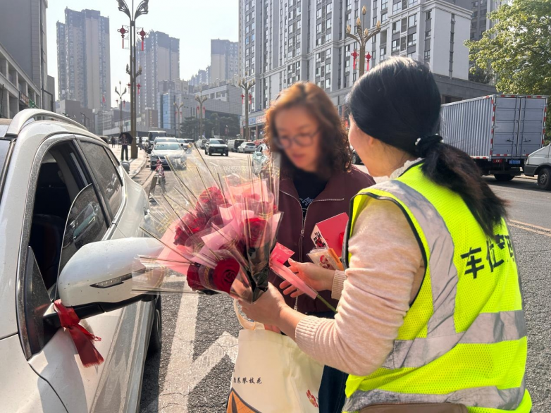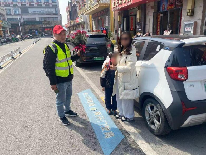 “您好,妇女节快乐!”一句简单的问候,一支精心准备的鲜花,让匆忙的早晨多了几分温馨。有车主接过花后惊喜地说:“没想到停个车还能收到祝福,谢谢你们!”也有车主摇下车窗,与巡检员合影留念,记录下这美好的一刻。