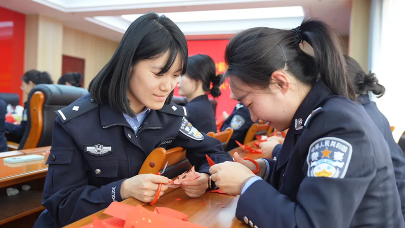 剪纸,是一门减法艺术——删繁就简,方见本真。这恰如我们公安女警的品格:褪去浮华,坚守初心;这恰如我们的工作:于细微处见真章,于平凡中铸不凡。活动现场,局特邀非遗剪纸老师亲临授课,系统讲解剪纸艺术的历史渊源、文化底蕴与创作技巧,从折纸、构图到下剪、成型,一步步耐心示范、细致指导。女警们凝神专注、巧手翻飞,红纸在指尖折叠、剪裁、雕琢,化作一幅幅精巧灵动、寓意美好的剪纸作品,既有传统吉祥纹样,也有饱含警营情怀的创意图案,在一刀一剪间感受非遗魅力,在一纸一画中抒发从警初心。