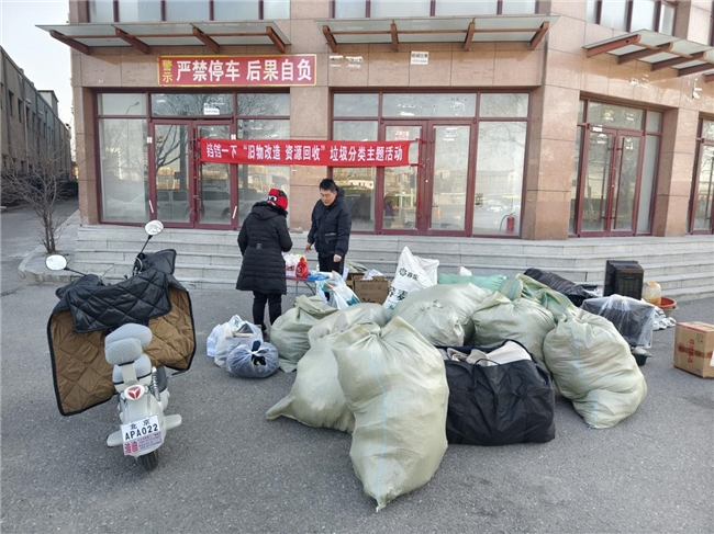 活动现场设置了专门的回收区域,明确回收品类与兑换规则,重点面向居民家中的旧衣物、旧家纺、废旧小家电及过期药品等可再生物资进行集中回收。活动一经开展,便得到了辖区居民的热烈响应,大家纷纷将家中积攒的闲置物品带到指定地点,主动参与到资源回收行动中来。工作人员耐心引导、细致服务,对回收物品逐一进行登记、分拣、整理和打包,当天共回收各类废旧物资300 余斤。