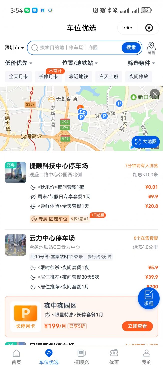 目前,捷停车·车位优选在深圳已覆盖超1500个错峰共享停车场、10万个停车位,其中超120个项目提供“长停月卡”服务。