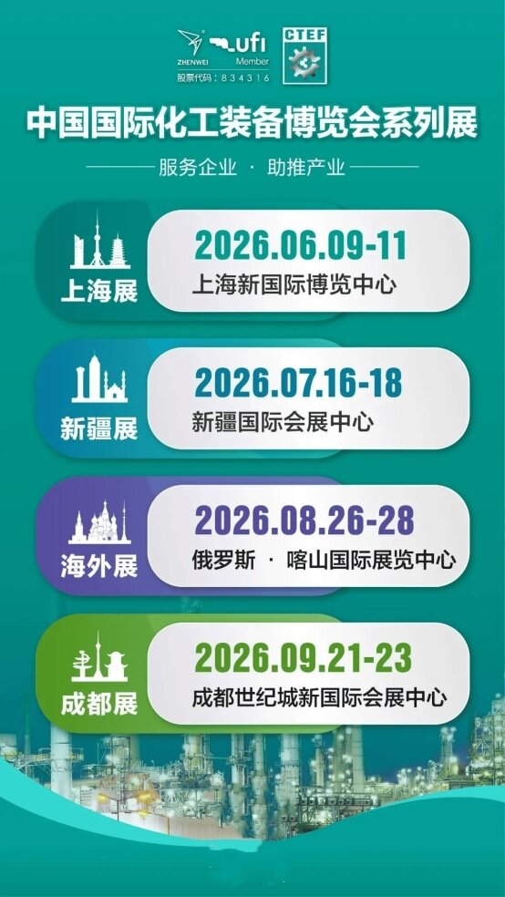 斯必克 苏尔寿 琵乐 鲁阳精工领衔!德美英法瑞士40+全球化工巨头齐聚CTEF中国化工装备博览会