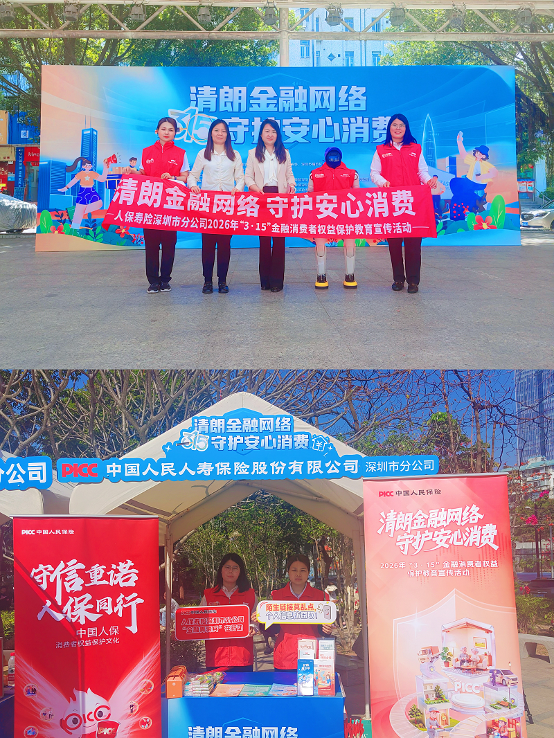 2026年作为“十五五”规划开局之年、加快建设金融强国的关键时期,为落实防范金融风险、守护消费者权益部署,3月13日,在深圳市消委会等三家单位指导下,人保寿险深圳市分公司联合33家保险、银行机构,开展以“清朗金融网络 守护安心消费”为主题的“3·15”金融消费者教育宣传活动,以科技赋能创新宣传模式,筑牢金融安全防线。