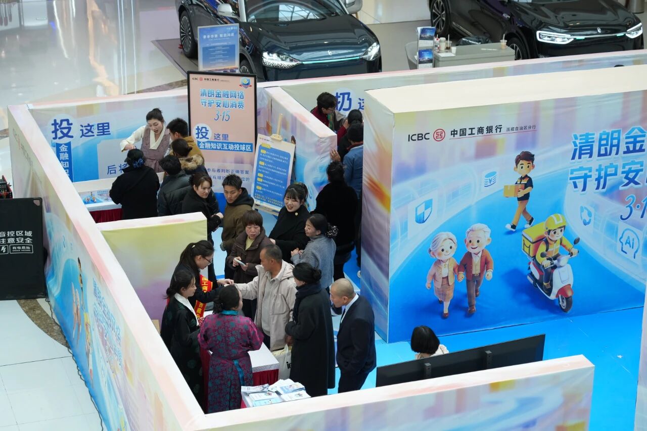 3月13日下午,在2026年“3·15”国际消费者权益日来临之际,中国工商银行西藏自治区分行(以下简称工行西藏分行)于拉萨核心商圈城关万达广场创新举办以“清朗金融网络守护安心消费”为主题的3·15金融消费者权益保护暨防范电信网络诈骗“快闪”投教活动,将金融消保与反诈知识送到市民身边,以金融力量守护群众“钱袋子”。