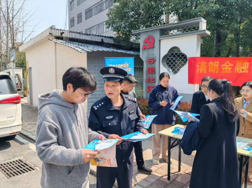 在社区便民点设置宣传展台,摆放主题展架与宣传折页,通过悬挂横幅、现场讲解、一对一咨询等形式,向过往居民普及金融消费权益保护、反诈防骗、理性投保等知识。社区民警同步参与答疑,结合典型案例讲解电信诈骗、非法集资的识别技巧,针对性解答理赔咨询、风险防范等群众关切问题,有效提升公众金融安全意识与维权能力。