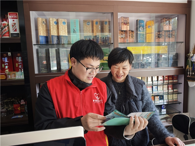 图为“香溢”志愿者面向零售户普法。 徐宁/摄