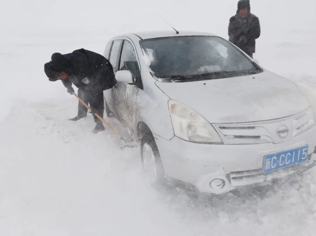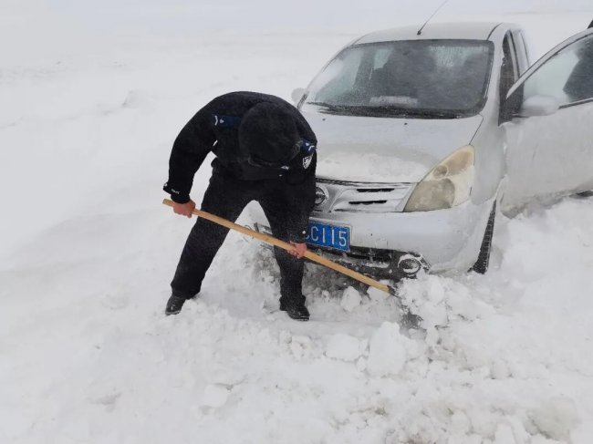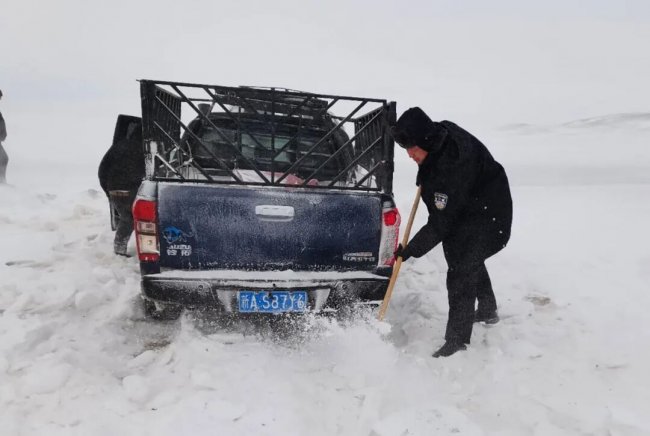 3月12日,阿勒泰边境管理支队库尔特边境派出所接到群众求助:受强风吹雪影响,3辆车辆12名群众在库尔特乡温都哈拉村至216国道之间的乡道37公里处被困。接到求助后,派出所民辅警立即携带救援装备赶赴现场,开展铲雪清障、牵引拖车等救援工作。经过近5个小时的紧张救援,被困车辆及群众全部安全脱困。