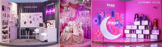 大秀现场特别设立的京东超市个护产品展区人潮涌动。展区以京东品牌色为基调,按照职场焕型、节日狂想、次元无界三大篇章,艺术化陈列了涵盖洗、护、养、造四大维度的超百款趋势新品,包含宝洁、欧莱雅、薇姿、沙宣、惠润、FINO等国际大牌,以及滋源、半亩花田、蜂花、理然、OKCS、忆丝芸等国内知名品牌,将秀场高光的潮流符号打造成兼具时尚感与互动性的沉浸式空间,让现场嘉宾轻松体验前沿发艺美学。