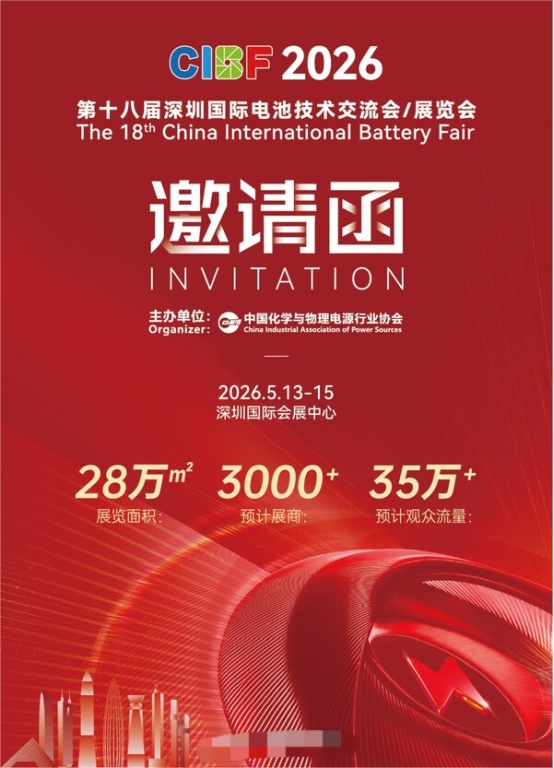 全球电池领域的旗舰盛会——由中国化学与物理电源行业协会举办的第十八届深圳国际电池技术交流会/展览会(CIBF2026),以"链动全球•赋能绿色•驱动未来"为主题,将于5月13—15日在深圳国际会展中心(宝安)举办。