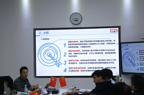 随后,威派格硬件产品与技术部总监介绍了《基于卫星遥感和四足机器人技术的供水管网漏损检测》,并在参观中展示了威派格的四足机器人。