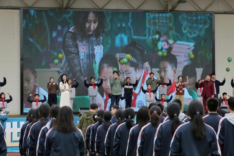 3月18日上午,四川省绵阳中学英才学校举行“为爱发声·呼吁世界和平”主题活动。世界和平大使杨蔓利,绵阳市委编办副主任宋波,绵阳中学英才学校党委书记、理事长任天彪,党委副书记、校长谭昌伦以及新闻媒体代表、师生及家长代表共同参加此次活动。