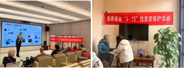 针对老年群体的金融投资保护需求,泰康基金积极履行社会责任,发挥泰康保险集团的服务优势,分别走进泰康之家·北京燕园,泰康之家·山东济南儒园养老社区开展金融消保宣传活动。活动现场,工作人员举办防诈骗宣传讲座,结合真实案例,深入浅出地讲解常见诈骗手段及防范方法,增强老年群体防骗意识。针对老年人关心的金融消费问题,工作人员现场提供一对一咨询服务,并发放针对老年群体的适老化金融宣传页,切实提升了老年群体金融消保意识,帮助他们识别风险、保护财产安全,以实际行动为老年人的金融生活保驾护航。