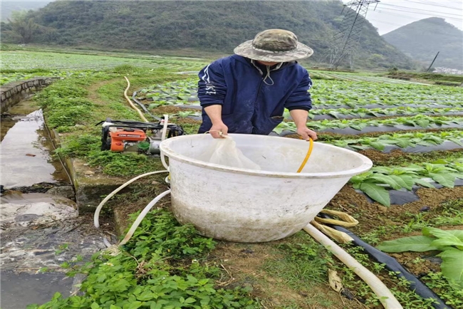 图为靖西市同德乡烟农进行滴灌追肥配药,苏红英摄