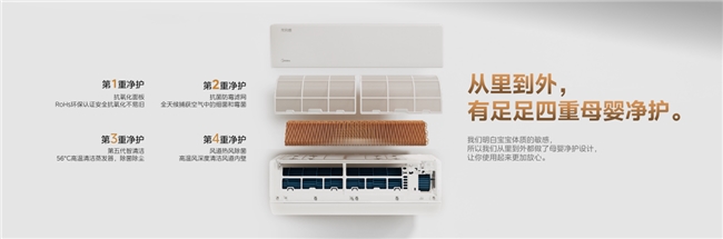 用户只需在美的美居APP中输入孕周或宝宝月龄,空调即可一键自动调配最合适的温、湿、风参数,化身为一位懂育儿的空调管家。