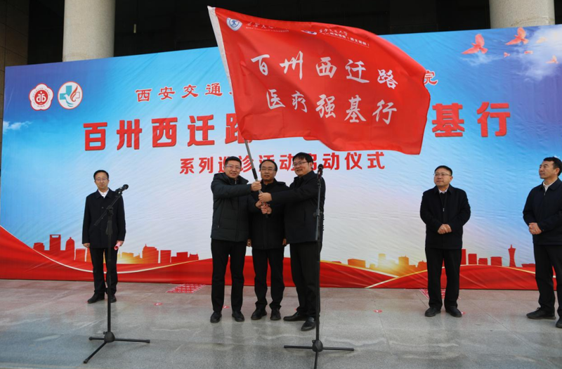 仪式由西安交大二附院副院长戴一主持,在庄严的氛围中,西安交通大学医学部常务副主任雷利利为活动授旗,戴一副院长与西安交通大学口腔医院副院长屠军波共同接旗,鲜红的旗帜在春风中飘扬,承载着西迁精神的传承与医疗惠民的使命,也标志着系列巡诊活动正式拉开帷幕。