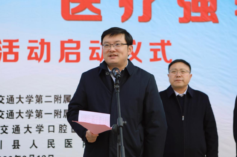 西安交大一附院事业发展与校友工作部副部长雷磊作为巡诊专家代表表态,将践行“医疗强基”使命,将优质资源下沉基层,切实为基层群众送健康、解难题,以此回馈社会,护佑一方安康。