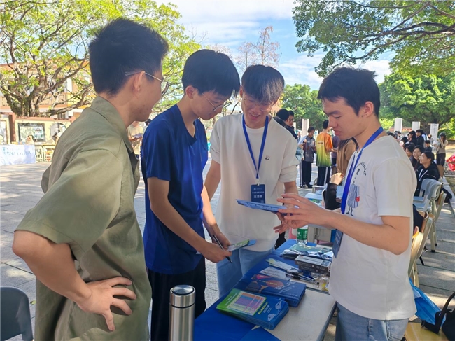 面对学弟学妹们的咨询,志愿者们结合自己的亲身经历,通过海报上的图表和数据,耐心解答每一个关于未来的疑问。