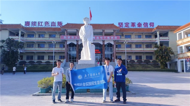 2026年2月5日,正值广东医科大学第十届“广医情·母校行”寒招活动十周年之际,志愿者们满怀赤诚与热爱,跨越山海奔赴汕尾市海丰县彭湃中学,在冬日暖阳下开启了一场点亮医学梦想的暖心之旅。佩戴闪亮工作牌的志愿者们,成为了校园里流动的亮丽风景线,他们带着母校的硬核底气与温情故事,与学弟学妹们在校道旁、海报前开启了面对面的“梦想约定”。虽然没有走进教室的讲台,没有多媒体课件的演示,但那一面面迎风飘扬的校旗、一张张精美的宣传海报以及满载情谊的广东医文创产品,无不传递着广医人“立志立德、求真求实”的精神火种,在这片红土地上续写着长达十载的“医”路情缘,让医学梦想在彭湃学子的心中悄然生根。