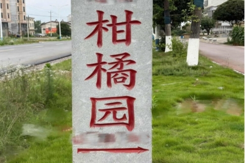(图为柑橘园指示牌)