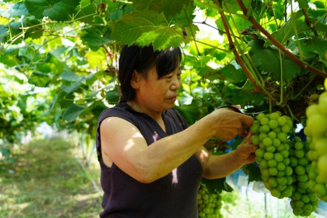 图为灵璧县崔庄村村民在采摘葡萄