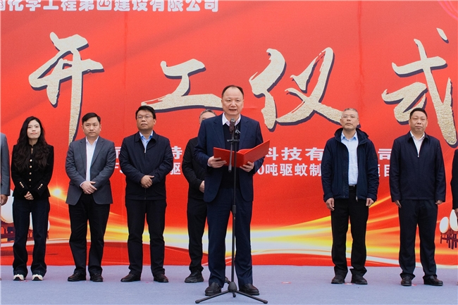 3月16日,镝特新材料年产3500吨驱蚊原药及500吨驱蚊制剂建设项目开工仪式在郴州永兴县全民创新创业园举行。湖南盐业集团党委书记、董事长马天毅出席并宣布项目开工,中国化学工程第四建设有限公司党委书记、董事长周鸿,郴州市永兴县委书记宾心华出席并致辞。