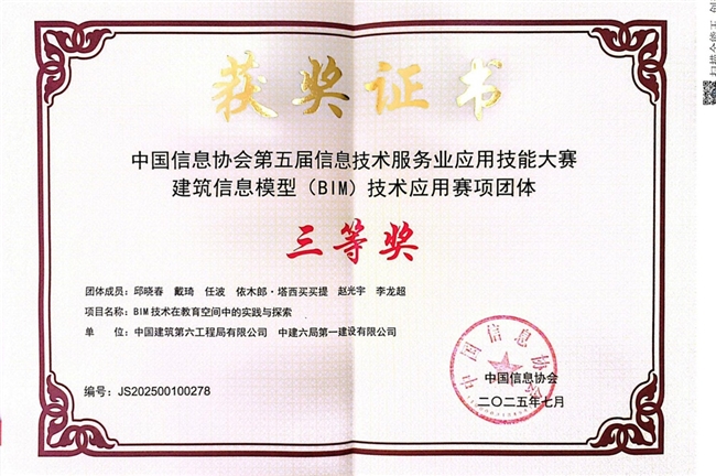 项目部立足项目实际开展技术创新实践,成立科技攻关小组,聚焦高支模、高空悬挑结构等施工重难点,合理运用永临结合措施,制定专项BIM应用方案与科技创新实施方案。创新运用BIM+Tekla模型深化设计技术,构建可视化、智能化施工管理体系,实现全专业管线碰撞检测智能化,有效降低现场变更与返工率。项目凭借扎实的科技创新成果,荣获中国信息协会第五届信息技术服务业应用技能大赛建筑信息模型(BIM)技术应用赛项团体三等奖。